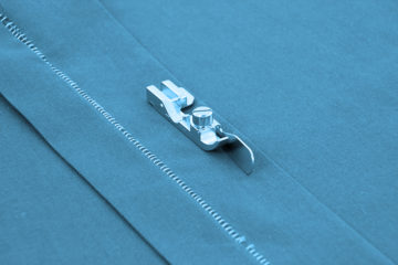 Mit dem Blindstichfuß können Sie einen exakten Blindsaum als Kantenabschluss auf schweren und mittelschweren Materialien erstellen. Durch die verstellbare Führung kann er Ihnen auch bei Flachnähten (Flatlock) eine große Hilfe sein.